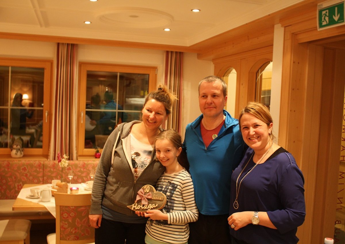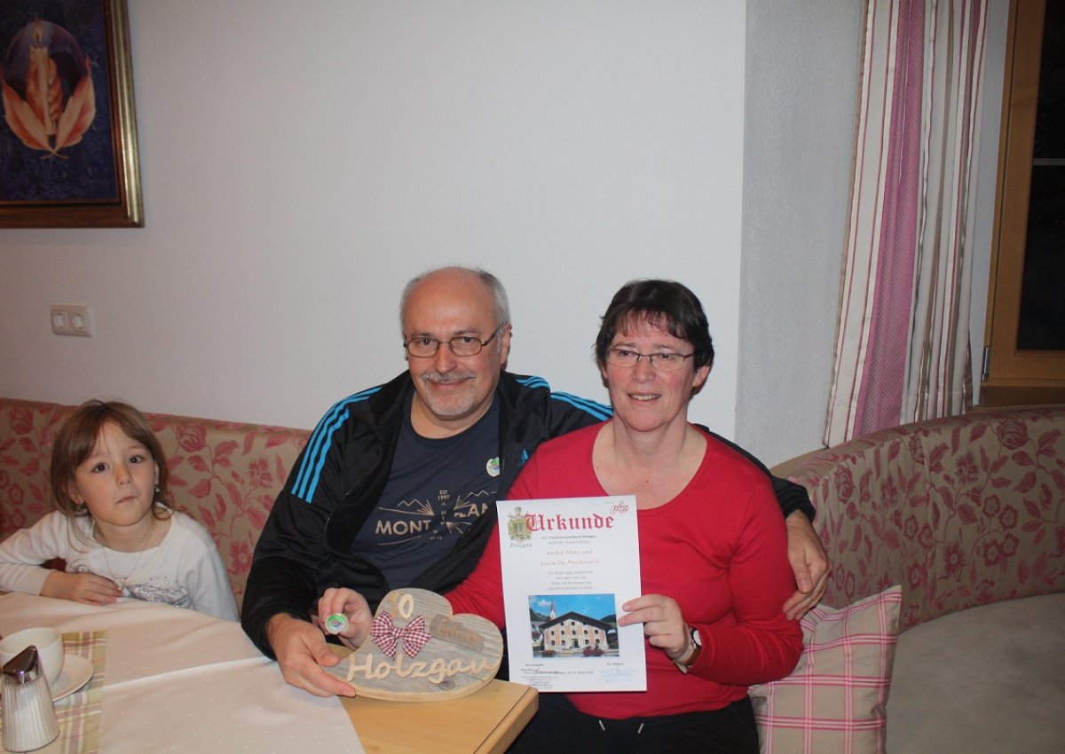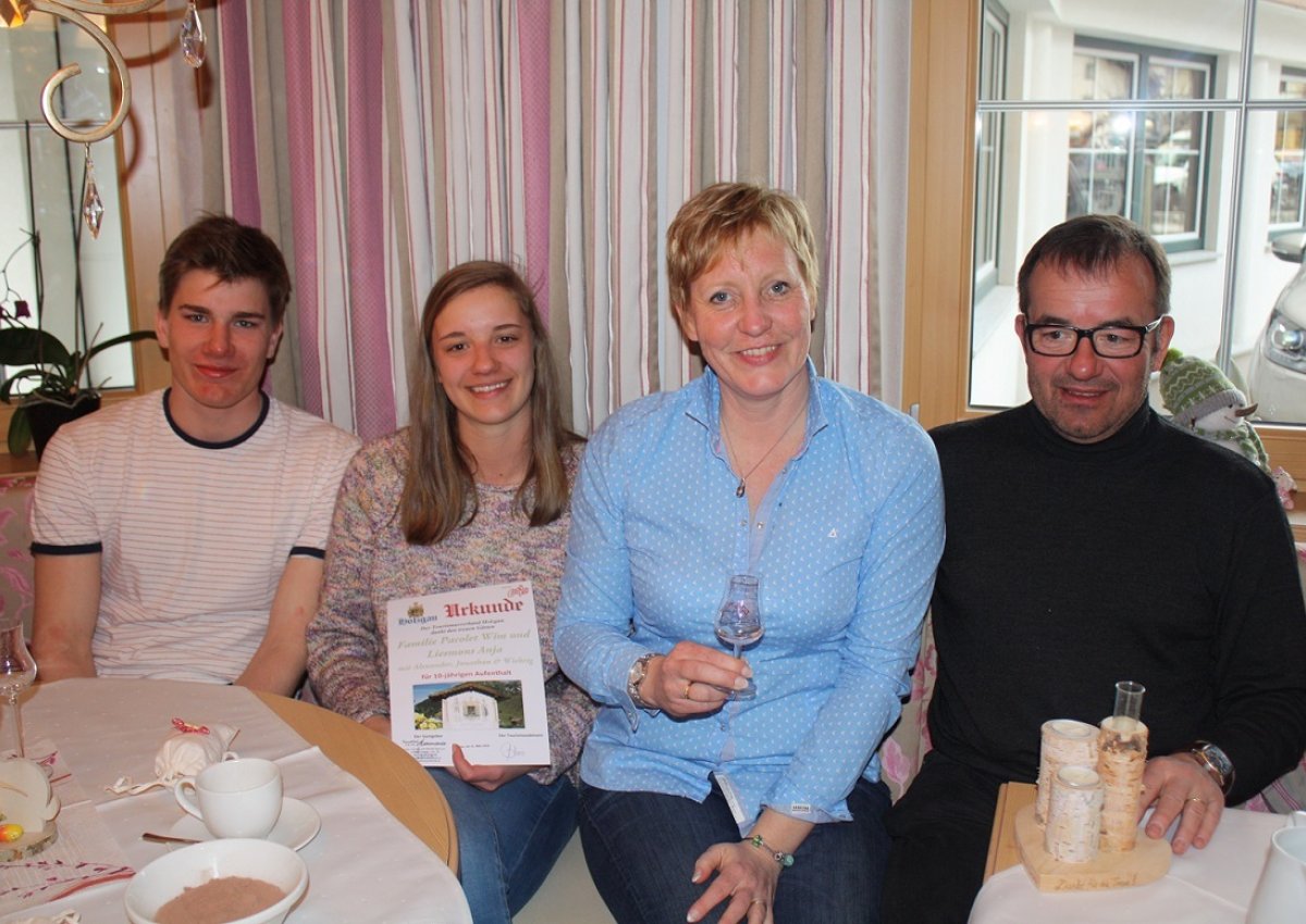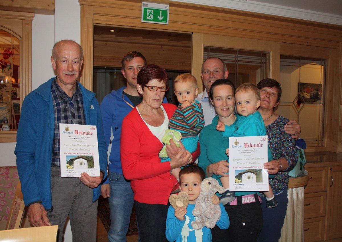 Seit 2011 unsere Gäste, zuvor schon in Bach gewesen – Familie Van den Steene Michale und Vandersnickt Saskia mit Bram und Maike geehrt für 15 Jahre Lechtal