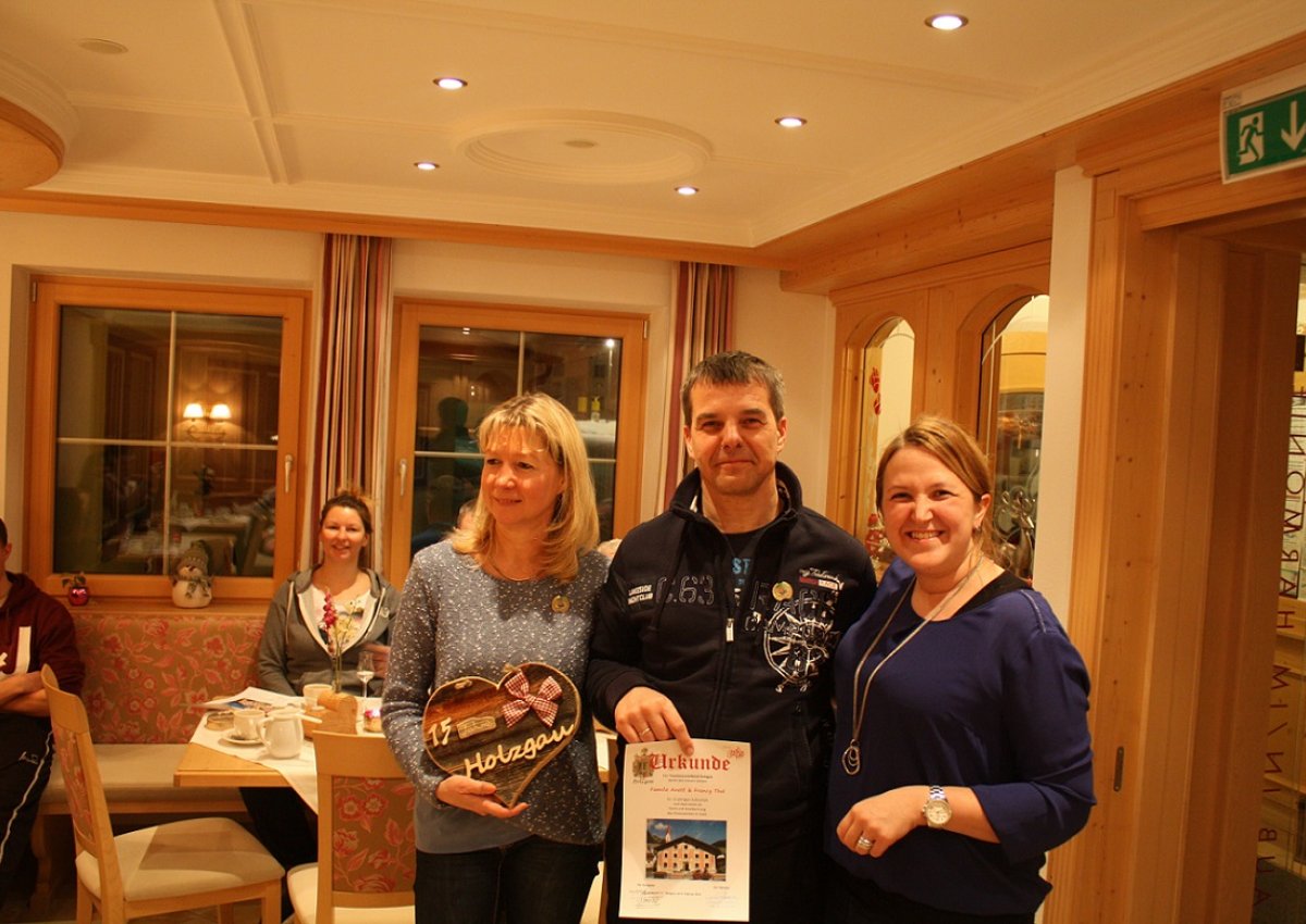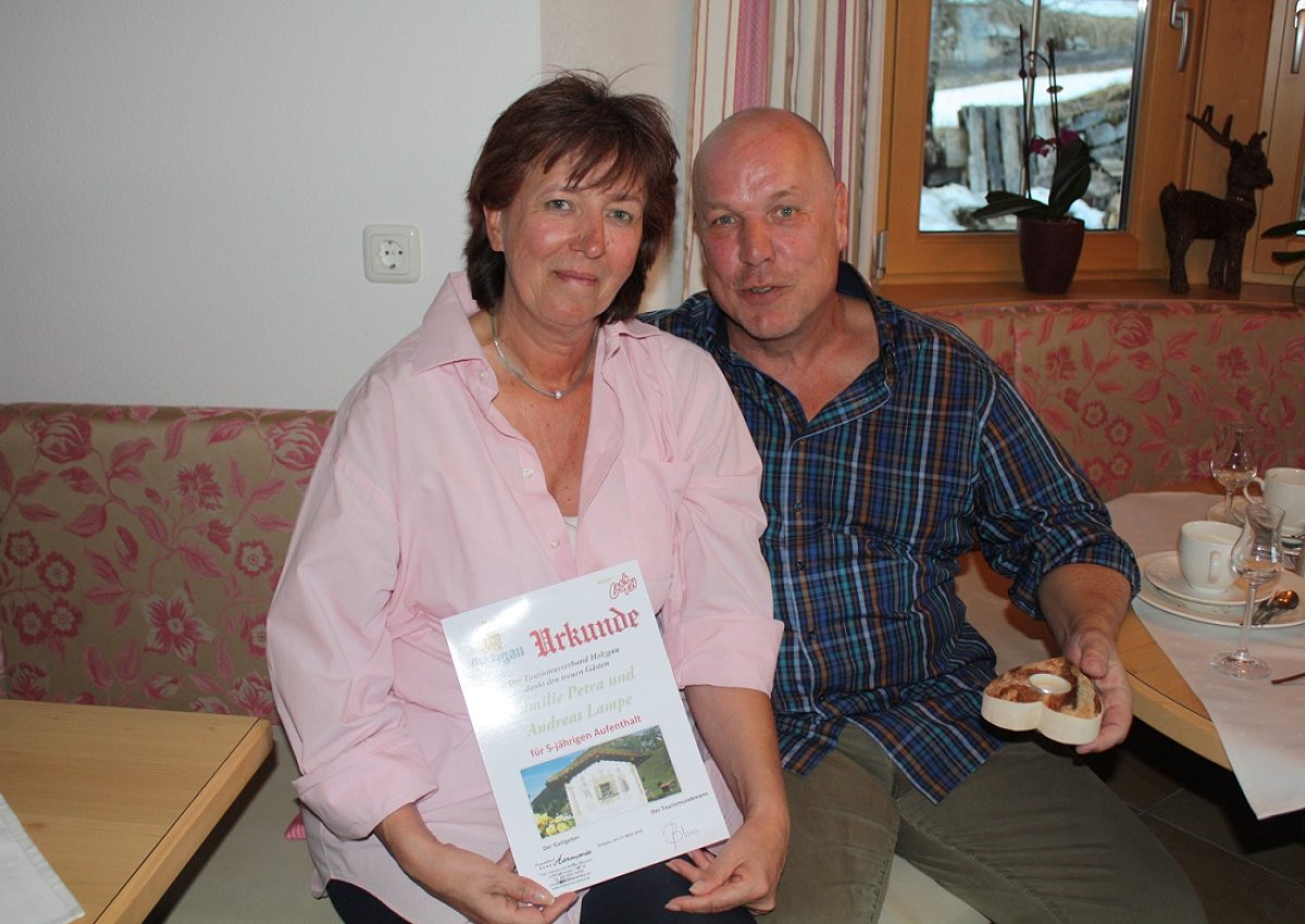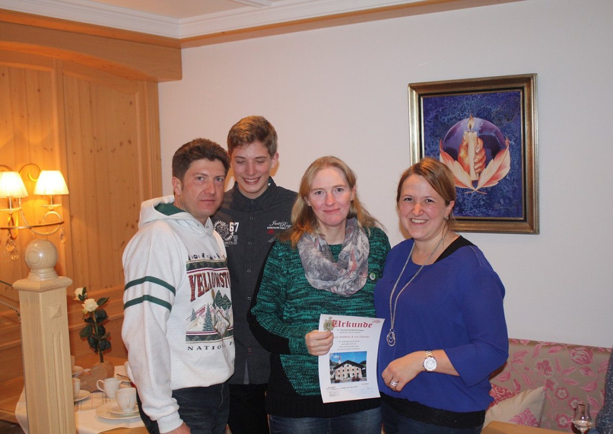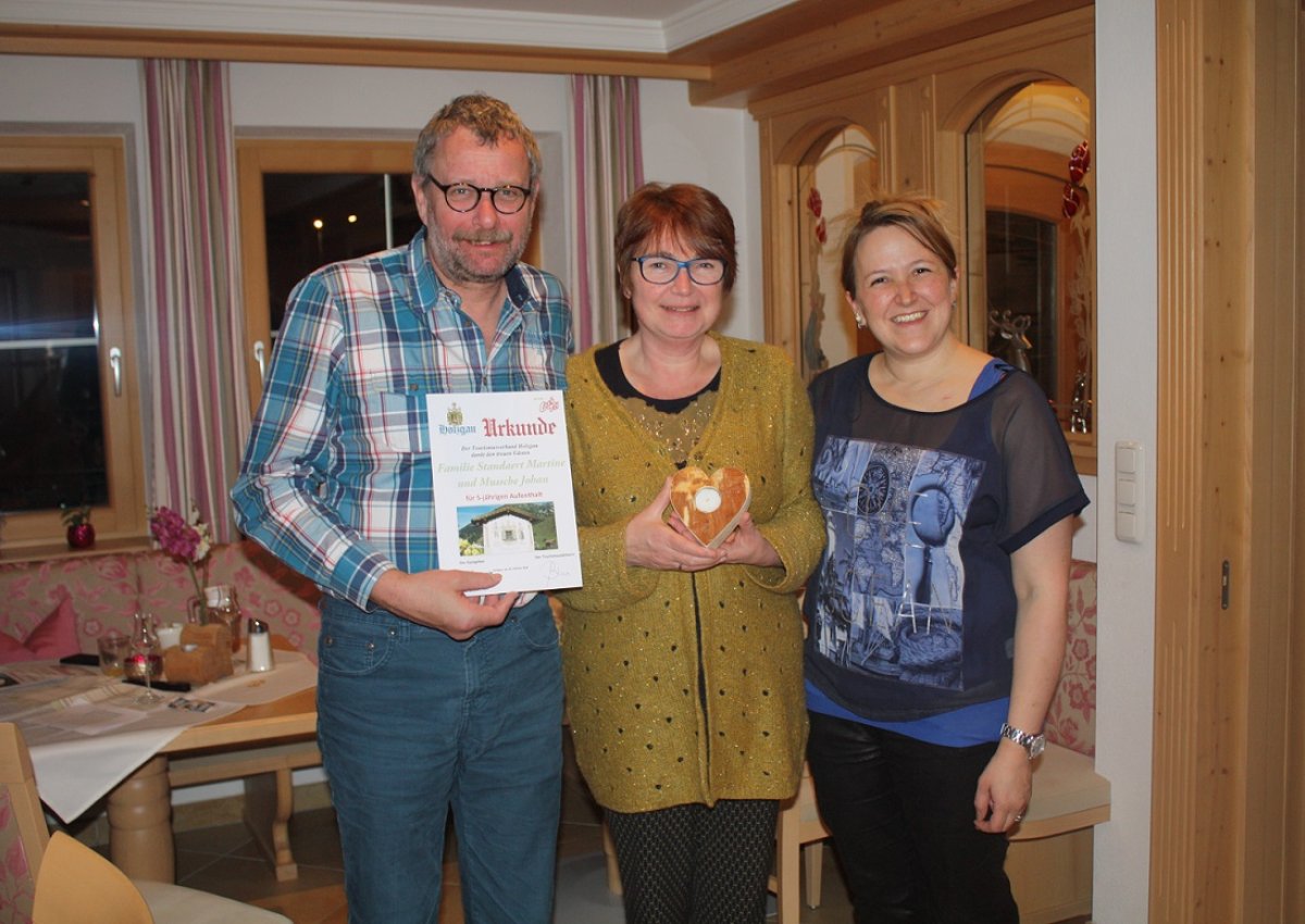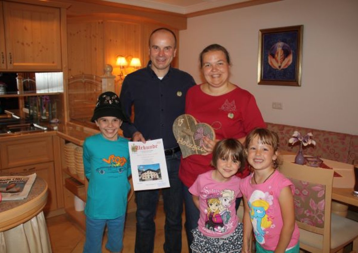 Seit 2011 unsere Gäste, zuvor schon in Bach gewesen – Familie Van den Steene Michale und Vandersnickt Saskia mit Bram und Maike geehrt für 15 Jahre Lechtal