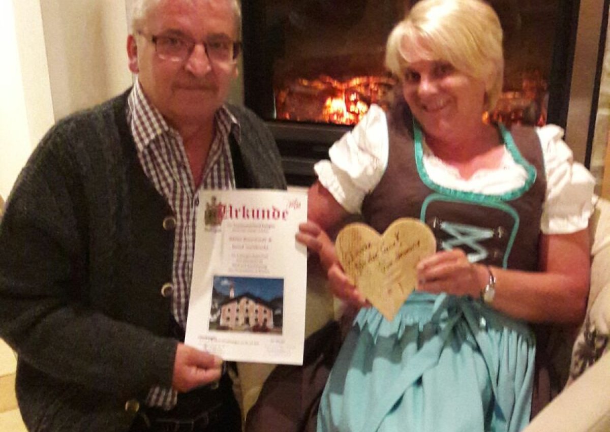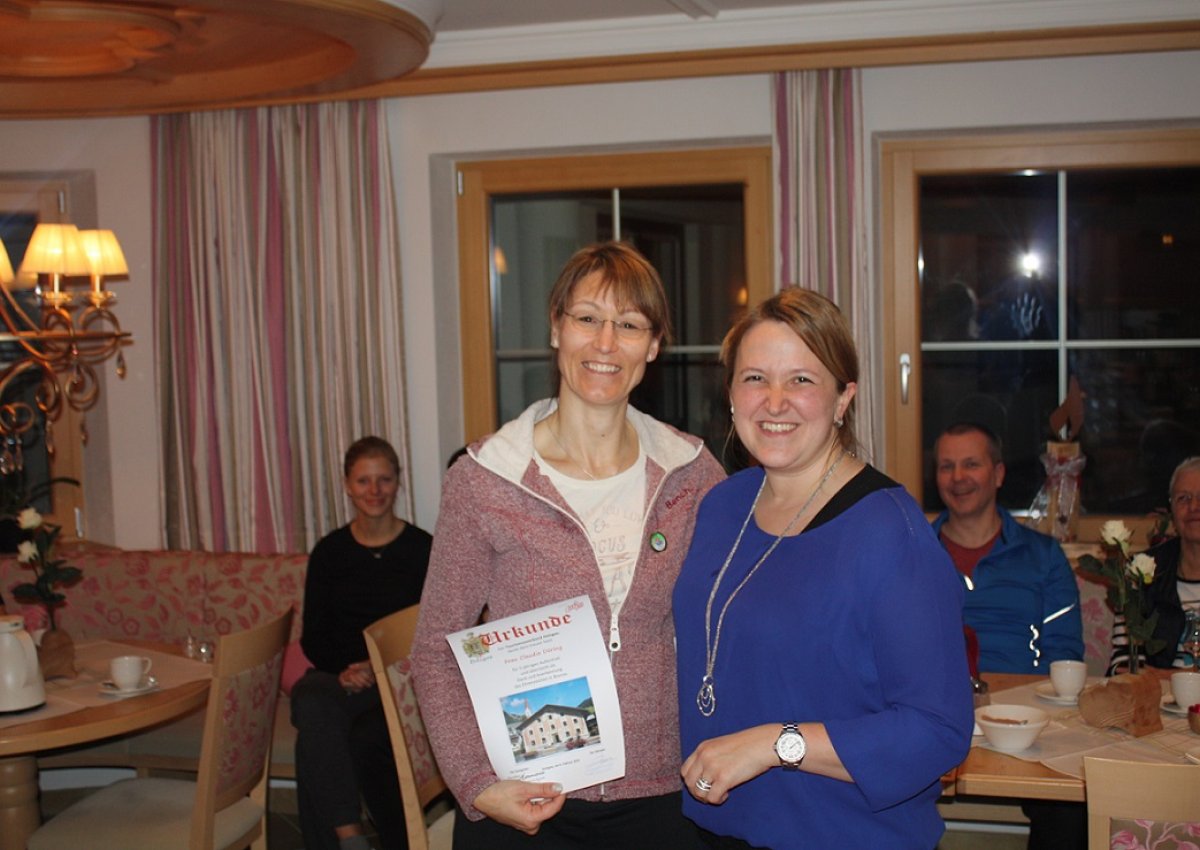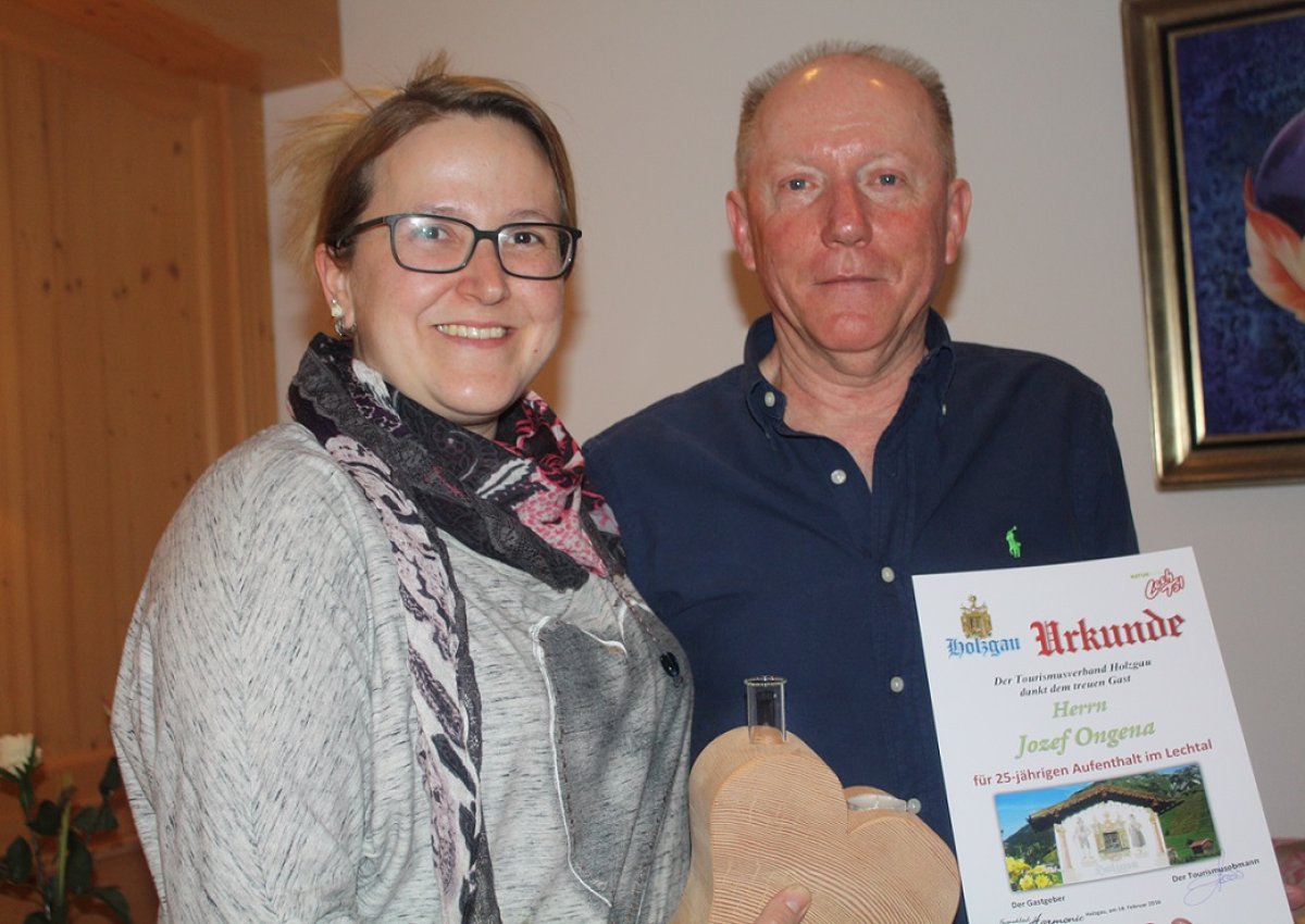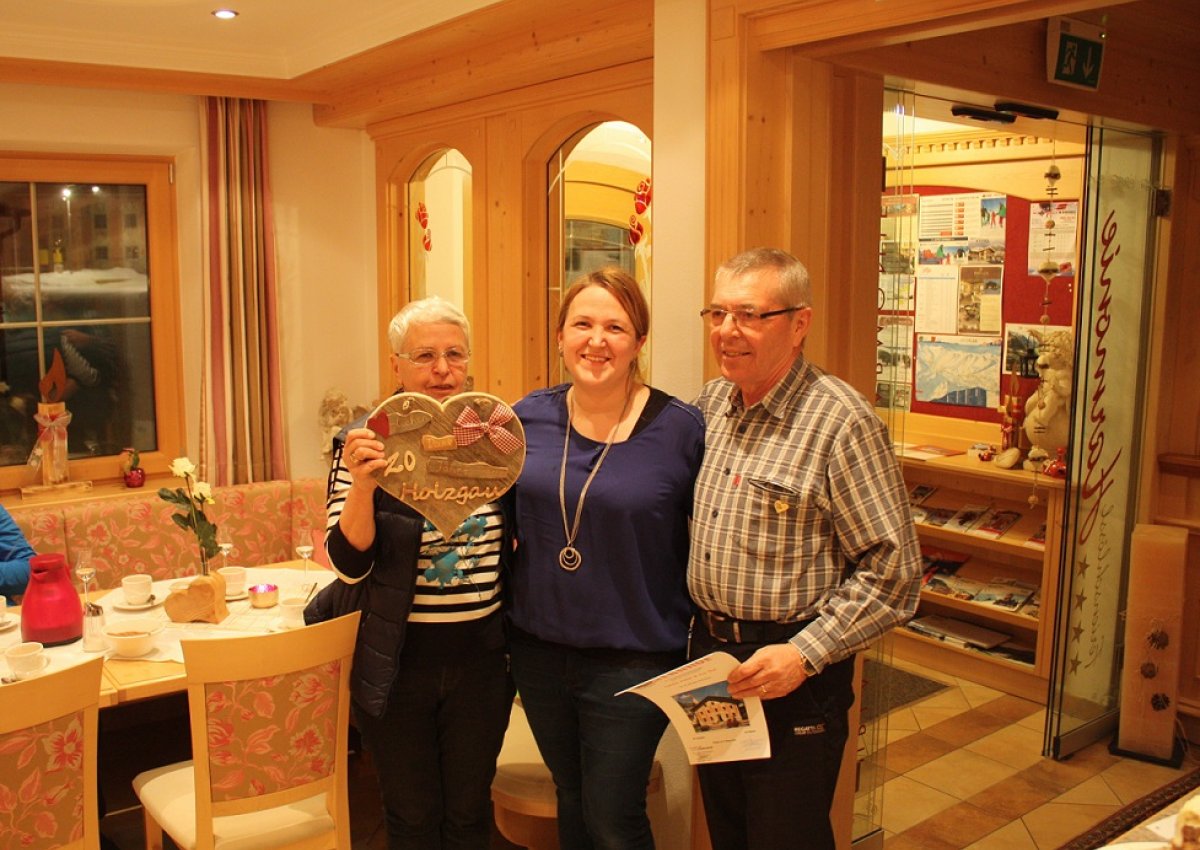 Seit 2011 unsere Gäste, zuvor schon in Bach gewesen – Familie Van den Steene Michale und Vandersnickt Saskia mit Bram und Maike geehrt für 15 Jahre Lechtal